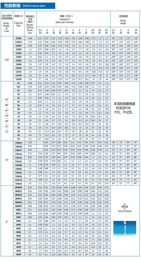 Application consulting: 139 1663 9930 Standard fan nozzles are divided into: Low flow rate 1/8-1/4 NPT or BSPT (M) Medium flow 1/8-3/4 NPT or BSPT (M) Large flow 1-2 NPT or BSPT (M) Design Features The characteristics of H/U series nozzles